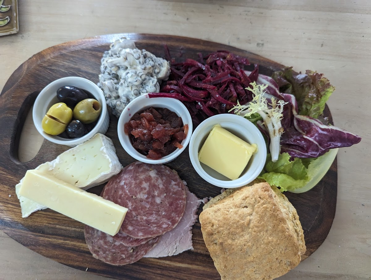 My mum and I come here whenever we’re Bungay-way. I’m so impressed with this business, the service is so warm and hospitable (we wanted the lunch platter for two but my mum couldn’t have garlic so she offered us two different boards), the salads are spectacular and ever changing - today we tried the apple with sesame and pak choi and also a delicious coleslaw - and the prices, you can’t beat them. I’m so happy to see that this place is always busy, and the food always made and served with so much love.